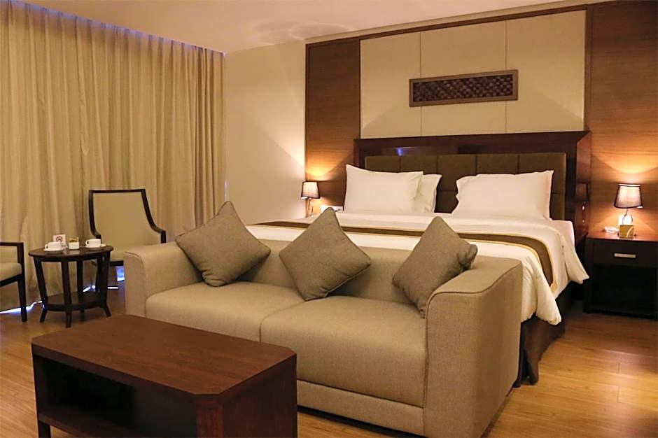 This spacious air-conditioned suite features a sofa, seating area and wardrobe. Fitted with a flat-screen TV, laptop safe, electric kettle and mini-bar. Private bathroom comes with bath or shower, hairdyer and free toiletries. Guests enjoy city views.